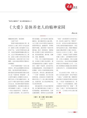 真诚祝愿《大爱》在情怀中前进 《大爱》是休养老人的精神家园